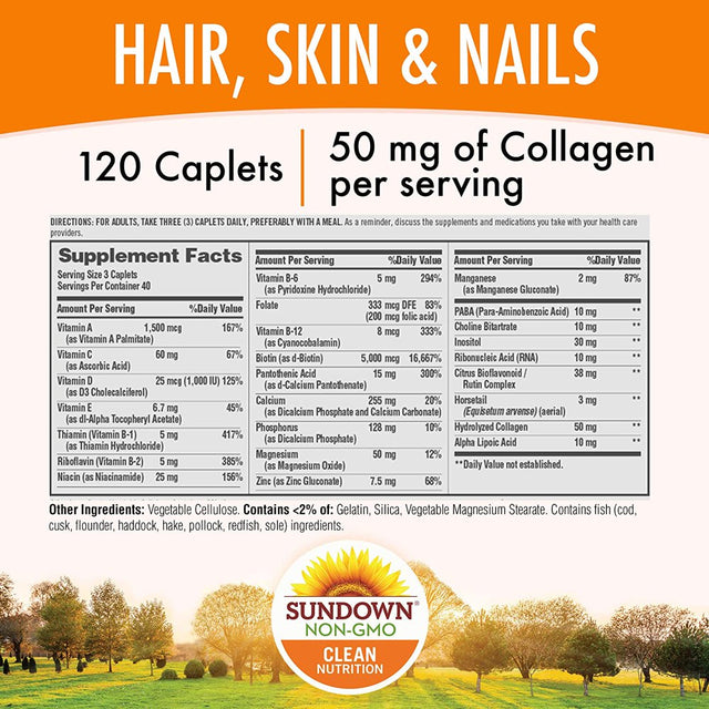 Sundown Naturals Hair, Skin & Nails, 120 Caplets (65287)