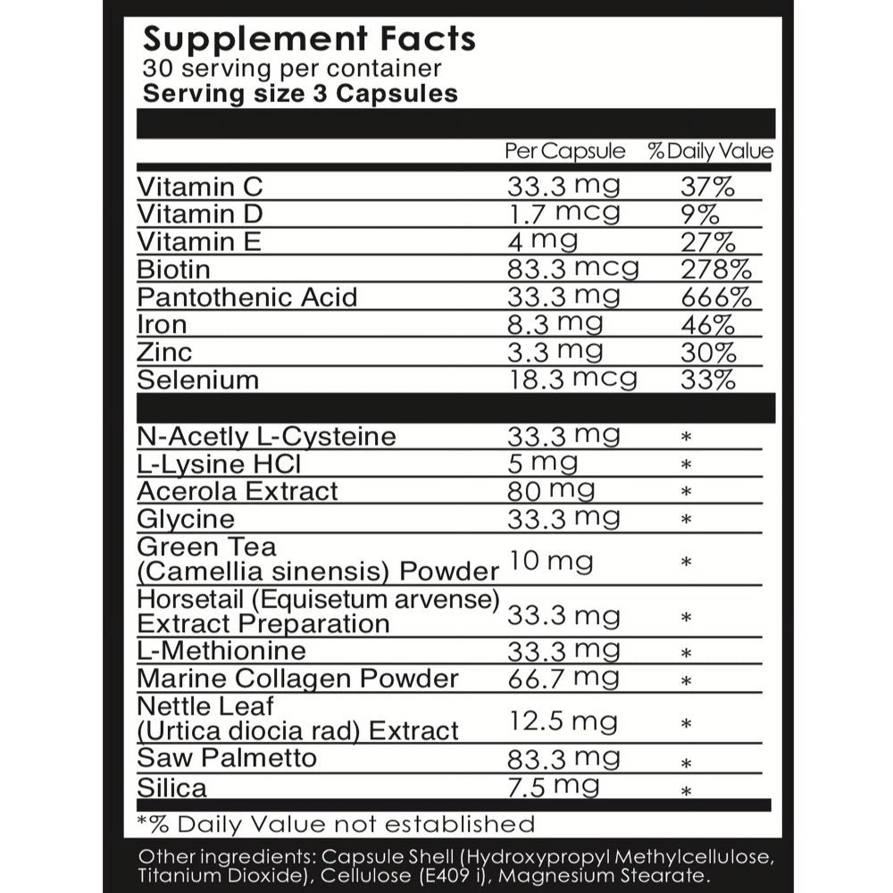 - Prioritize Your Hair: Prioritize your hair’s well-being! Crafted with a commitment to purity, our hair growth vitamins boast a natural, chemical-free composition. Feel confident in nourishing your hair without compromise, as our gentle formula is safe for daily use, fostering healthier hair growth without any unwanted side effects.