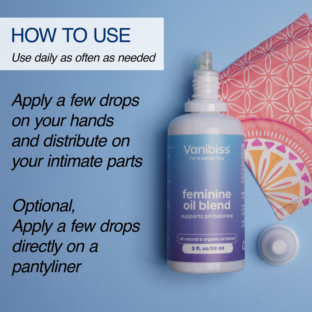 - Vanibiss Feminine Oil Blend helps remove the vaginal odor caused by menstruation, intimacy, exercise, menopause, and other factors in females.