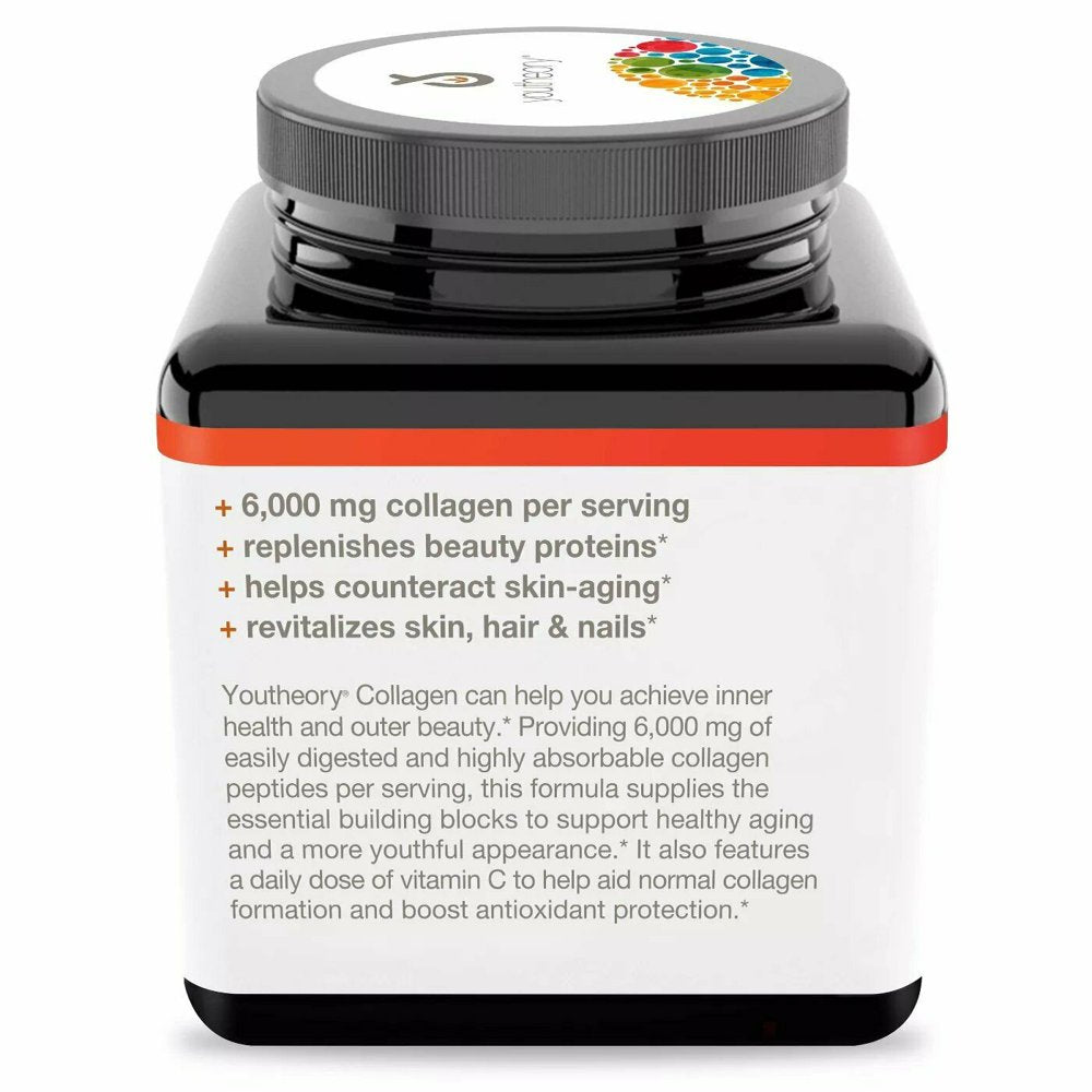 Collagen is a major structural protein in the human body (found in skin, joints, bones, blood vessels and connective tissues). As we age, collagen naturally breaks down and diminishes over time, leading to the early signs of aging. Youtheory Collagen can help you achieve inner health and outer beauty.* Providing 6,000 mg of easily digested and highly absorbable collagen peptides per serving, this formula supplies the essential building blocks to support healthy aging and a more youthful appearance.