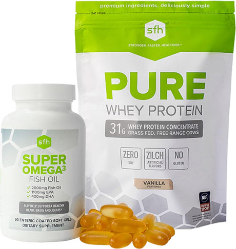 SFH Health & Wellness Bundle Pure Whey Vanilla Protein Powder and Super Omega 3 Fish Oil Capsules