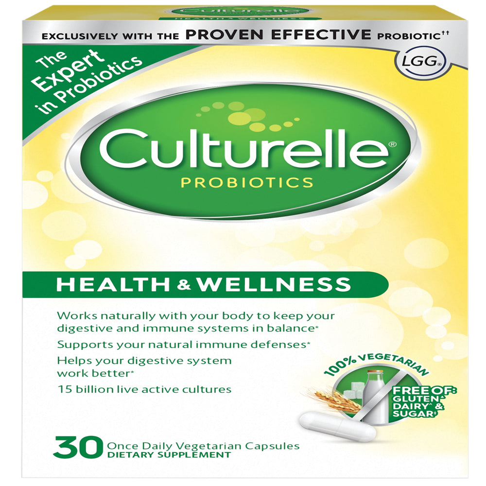 Culturelle® Health & Wellness offers all of the immune system benefits of the #1 clinically studied probiotic strain,?? Lactobacillus rhamnosus GG (LGG®), in a plant-based, vegetarian formula.* Culturelle® Health & Wellness vegetarian capsules contain 15 billion active cultures of LGG®, to safely and naturally restore the balance of good and friendly bacteria in your intestinal tract, where 70% of the body?s immune system resides.* Balancing the intestinal bacteria gives your whole system a tune up and supports your natural defenses.*