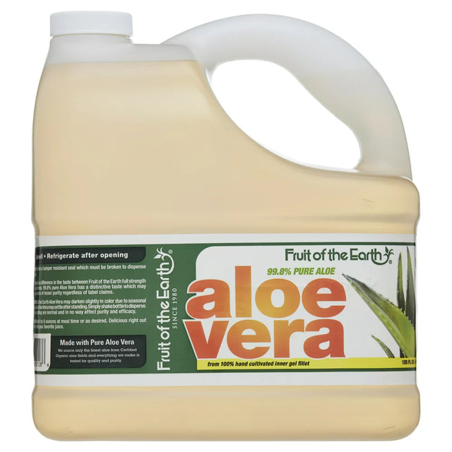 Experience purity in every sip of Fruit of the Earth Aloe Vera Drink 128 fluid ounces. Aloe vera has a wealth of health benefits, from nourishing the skin and hair to balancing pH levels, improving digestion, liver function and more. Fruit of the Earth pure Aloe Vera Drink is crafted with close to nothing but aloe vera, including hand-cultivated inner gel fillets for the maximum health benefits. This aloe vera contains no sugar, starches or thickeners and is never tested on animals.
