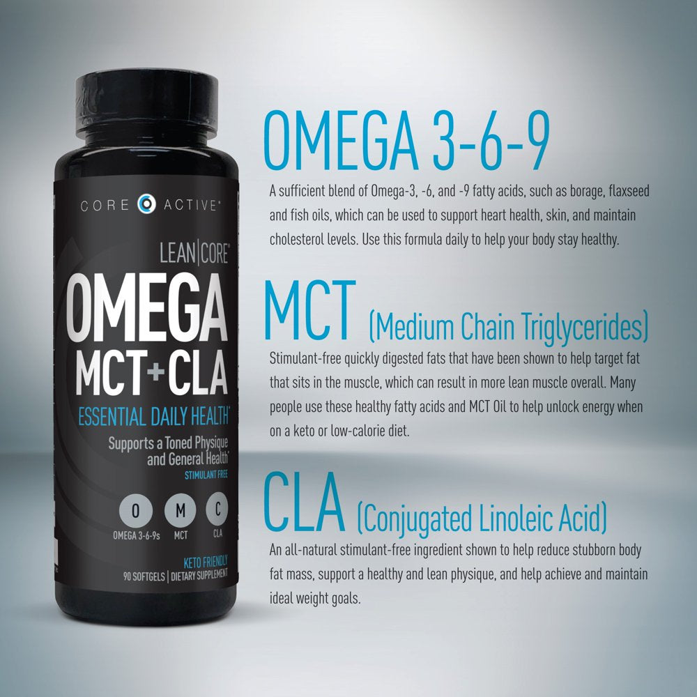 LEAN CORE OMEGA MCT + CLA - Stimulant Free Health & Wellness Formula, Lean Muscle & Toned Physique, Omega 3-6-9 Fatty Acids - Flaxseed Fish Oil- Coconut Oil- Keto Friendly 30 Day Supply (90 Softgels)