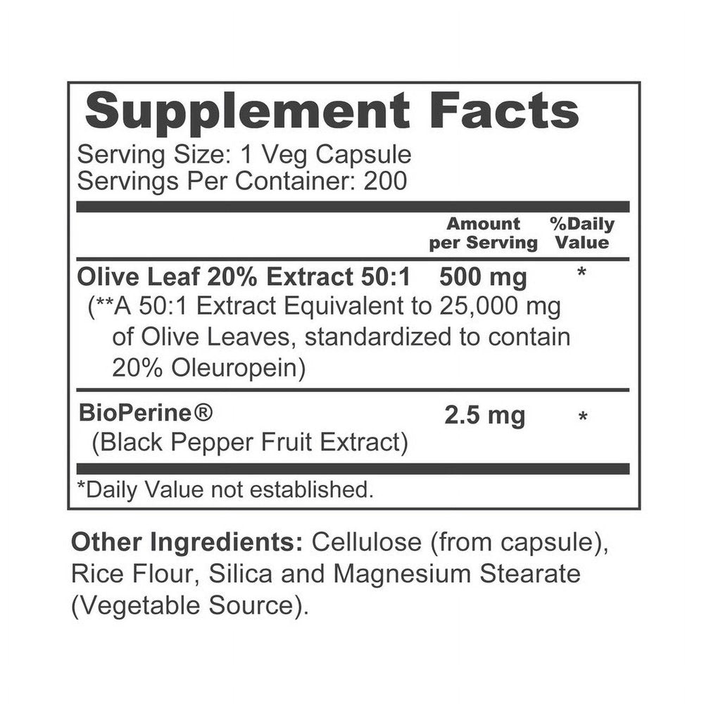Designed as a dietary supplement for adults, our Olive Leaf 25,000mg is a convenient addition to your daily routine. Whether you're looking to support your immune system, promote cardiovascular health, or simply add a natural boost to your well-being, our Olive Leaf supplement is crafted with your health in mind.