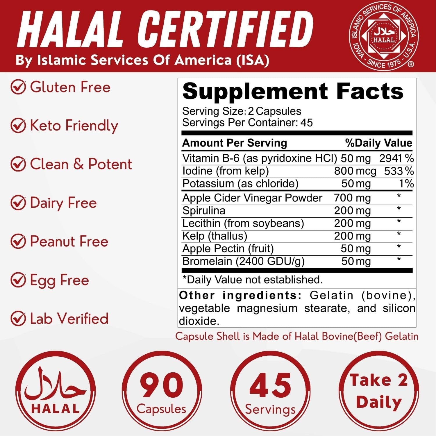 - Immune Support: Strengthen your immune system with the added benefits of Potassium, Iodine, and Spirulina in halal apple cider vinegar capsules.