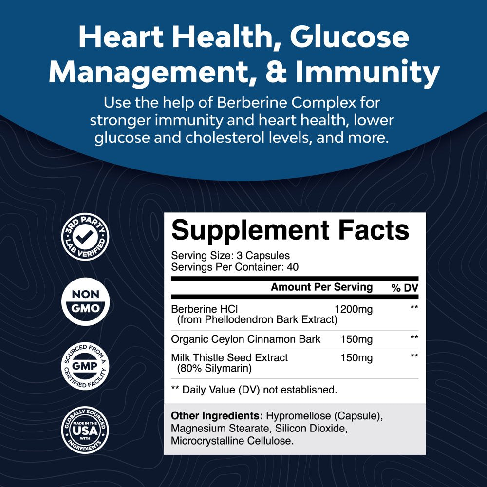 Berberine HCL - Fight back against internal imbalances with our berberine 1200mg per serving supplement that helps keep your pressure and carb levels on track for optimal wellness in a unique complex