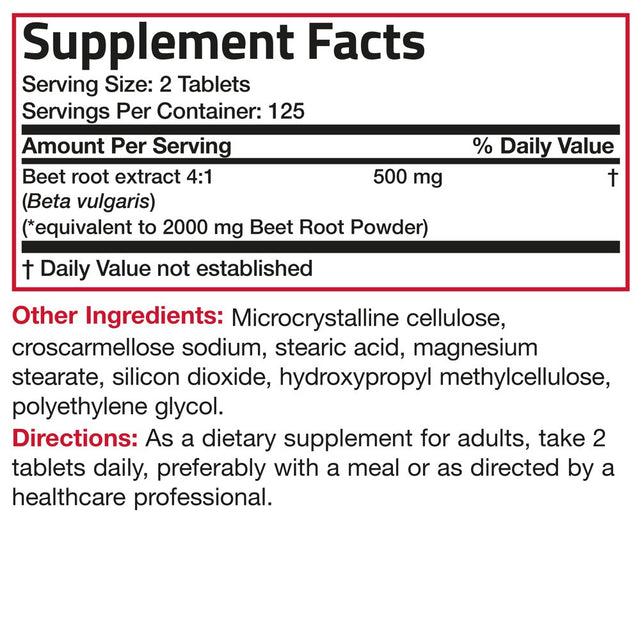 Bronson Beet Root 2000Mg Extra Strength 2000Mg per Serving, Promotes Healthy Circulation Supports Heart Health & Stamina, Non-Gmo, 250 Vegetarian Tablets