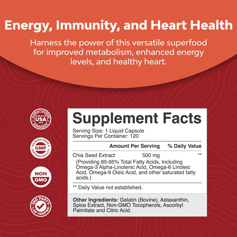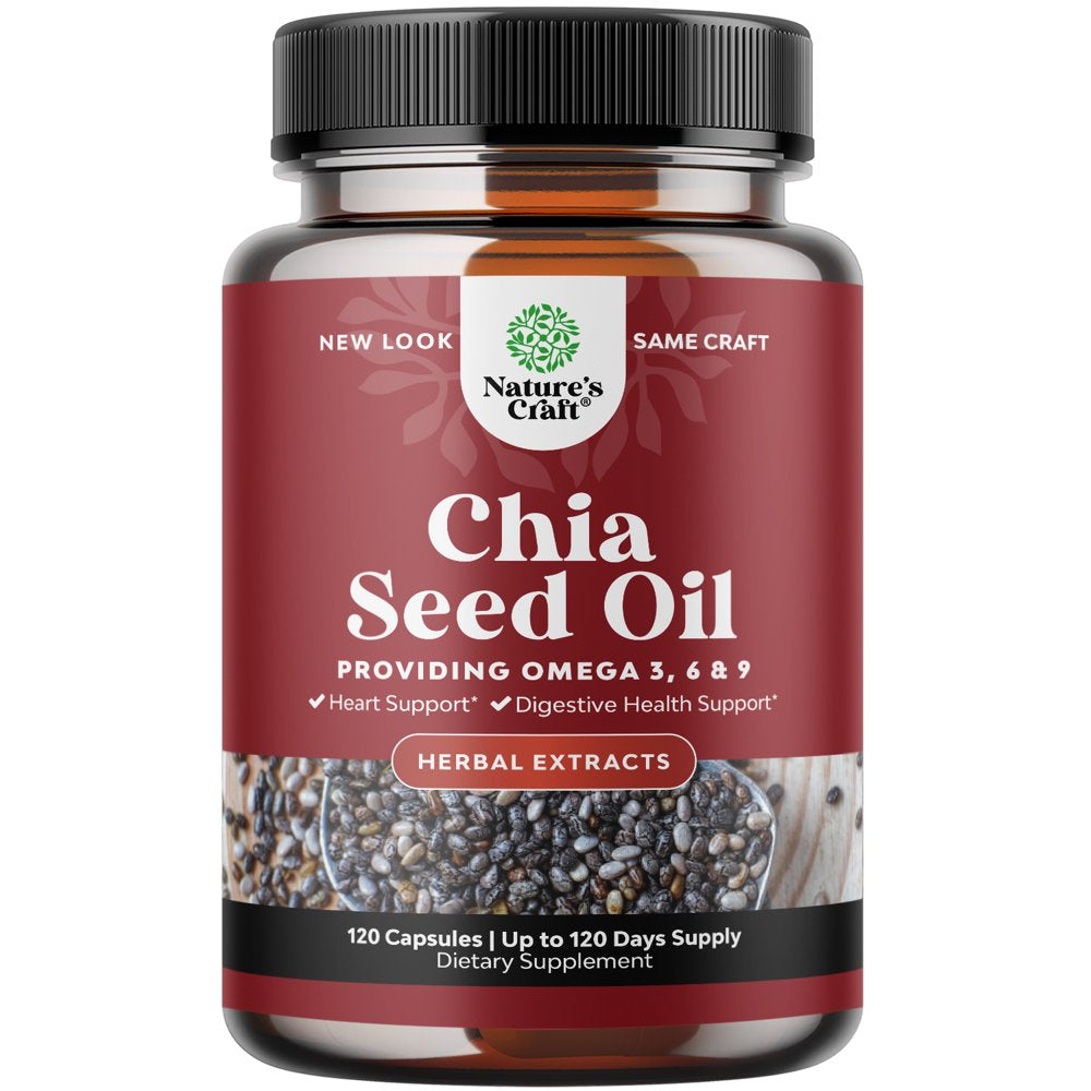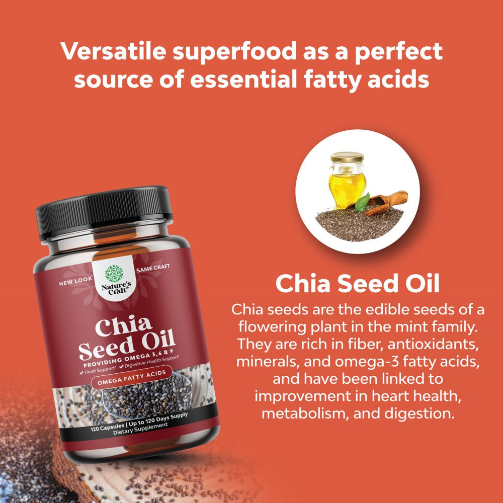 Chia Seed Oil Extract Capsules - Plant Based Omega 3 6 9 Supplement Daily Fiber Capsules for Adults Digestive Support Immunity and Heart Health Omega 3 Fatty Acids Supplement for Men and Women 120