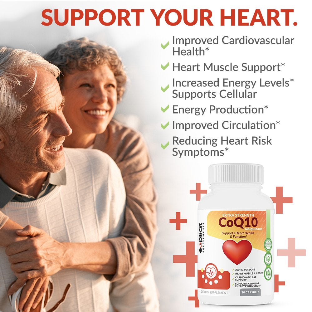 - Keep Your Heart Healthy – Our Coenzyme Q10 offers a max strength 200mg dosage, which helps keep your body’s cells healthy and full of energy. As your body produces CoQ10, your cells use this as their energy source to help maintain your heart and various systems.