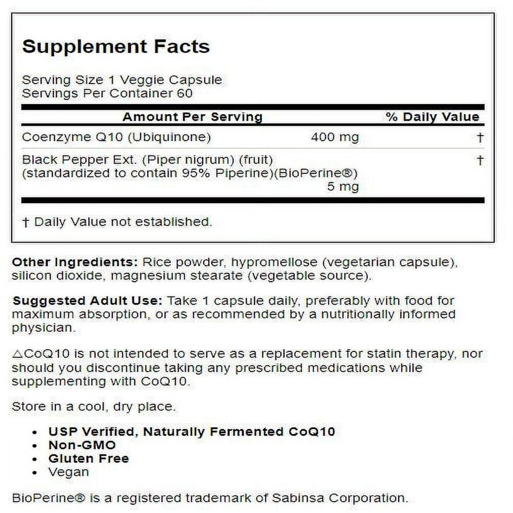 Doctor'S Best High Absorption Coq10 with Bioperine, Non-Gmo, Vegan, Gluten Free, Naturally Fermented, Heart Health and Energy Production, 400 Mg 60 Veggie Caps