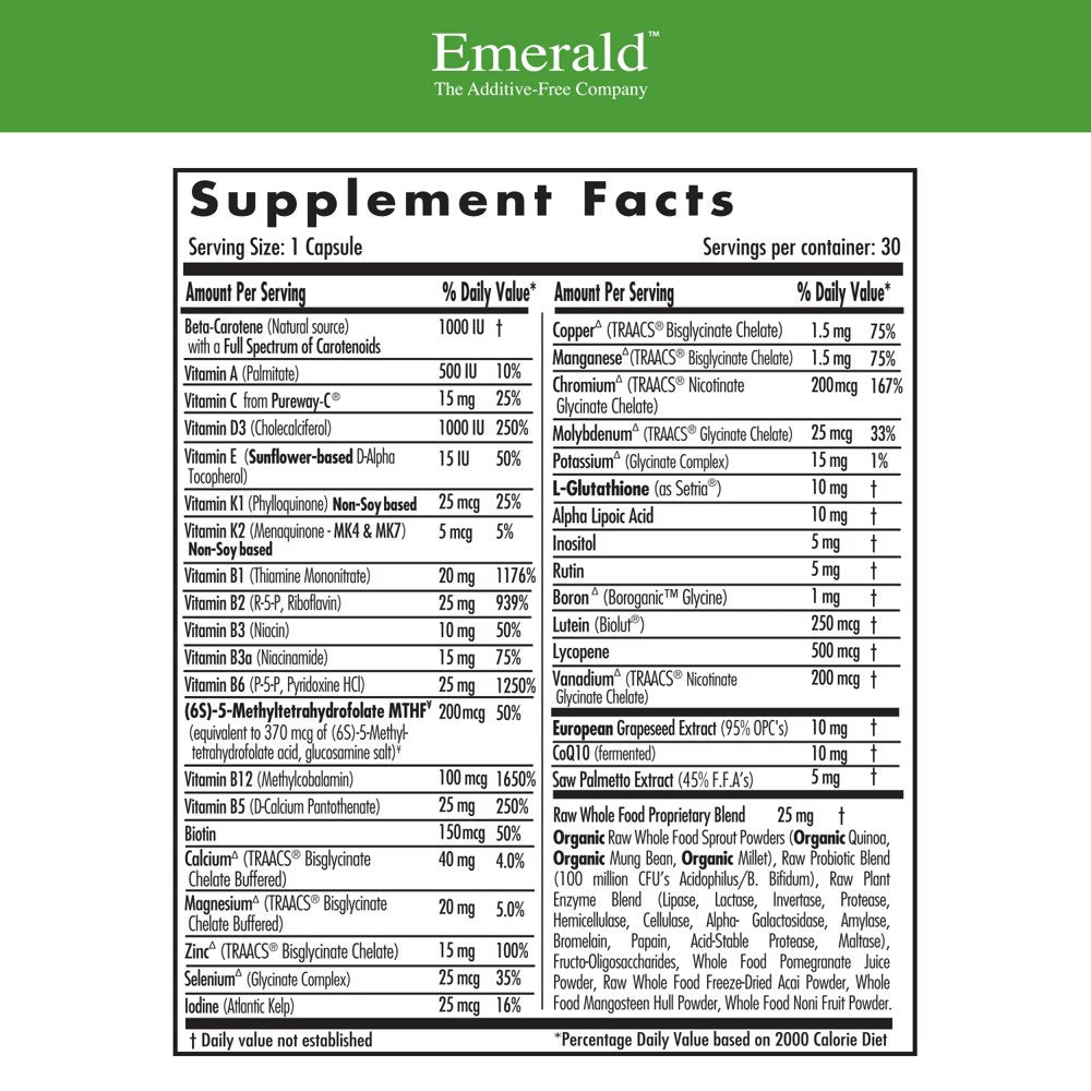 Emerald Labs Men'S 45+ 1-Daily Multi - Multivitamin with Coq10, Saw Palmetto and Lycopene to Support Heart Health, Energy Levels, Immune System, and Strong Bones - 30 Vegetable Capsules