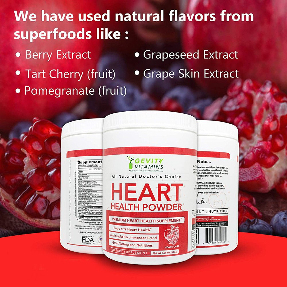 - FLAVORS FROM SUPERFOOD: In our heart supplement we have used flavors from superfoods like Berry Extract, Grapeseed Extract, Grape Skin Extract, Pomegranate (fruit), and Tart Cherry (fruit). This heart health powder provides cardio support to our bodies in an attempt to stay healthy and strong.