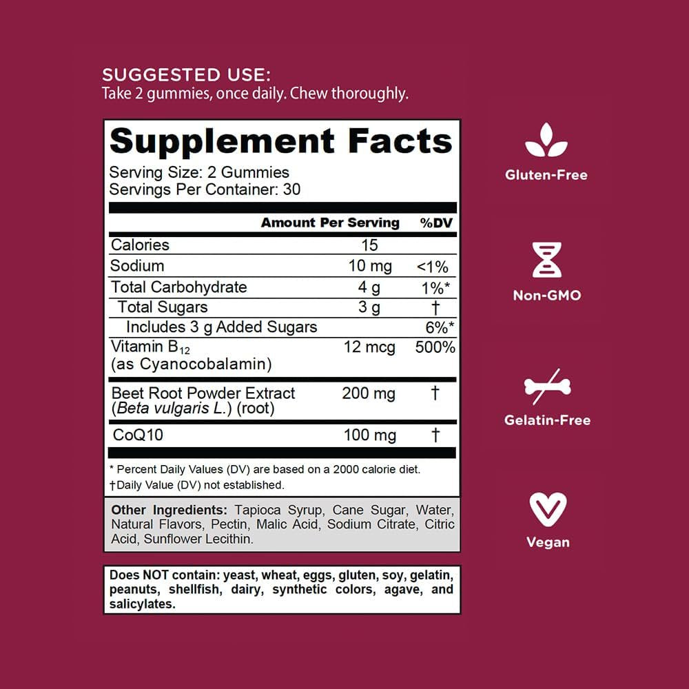 - Vegan, Non-GMO, Gluten-free, and Gelatin-free: Each bottle of Goli® Beets Cardio Gummies contains 60 delicious vegan, non-GMO, gluten-free, and gelatin-free gummies.