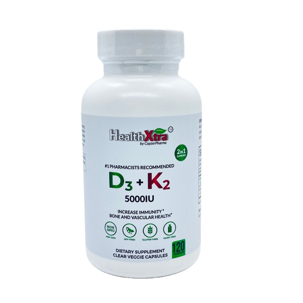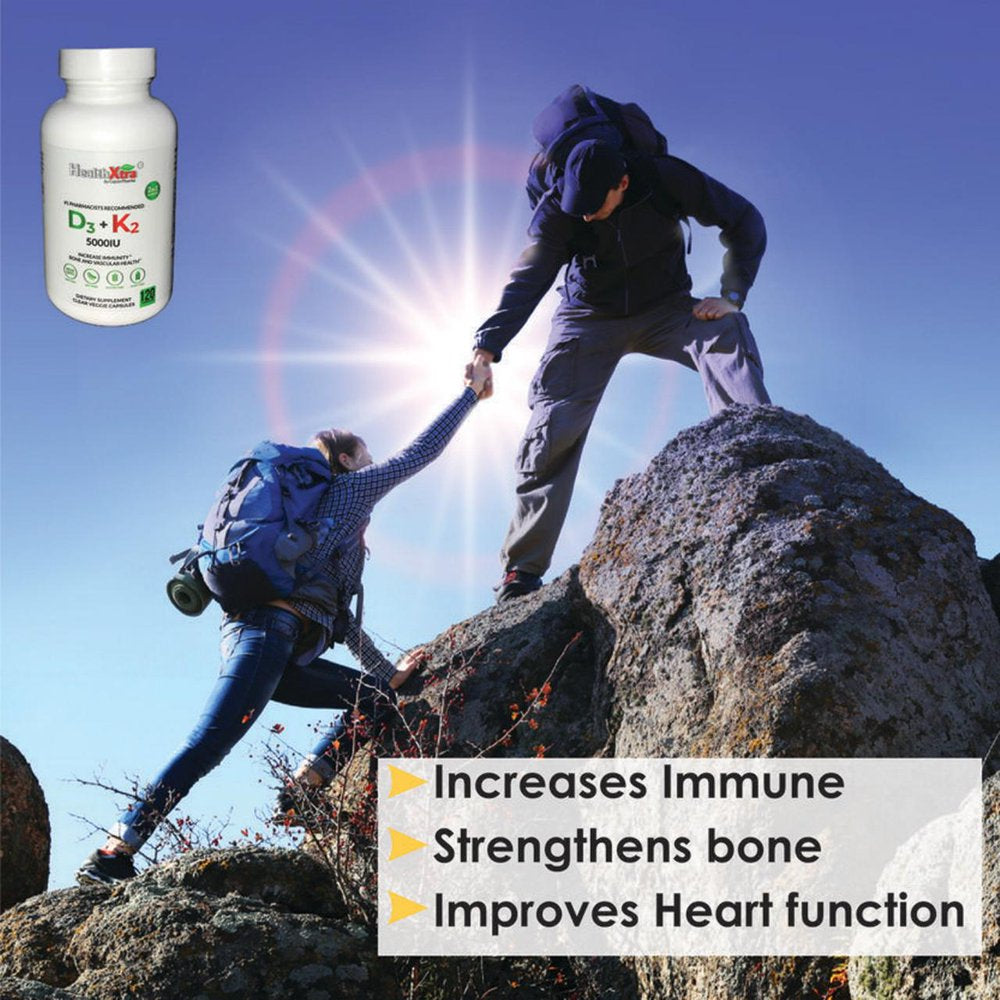 Healthxtra Vitamin D3+K2 Joint & Heart Health Support - 5000IU - 120 Capsules (4 Months Supply)