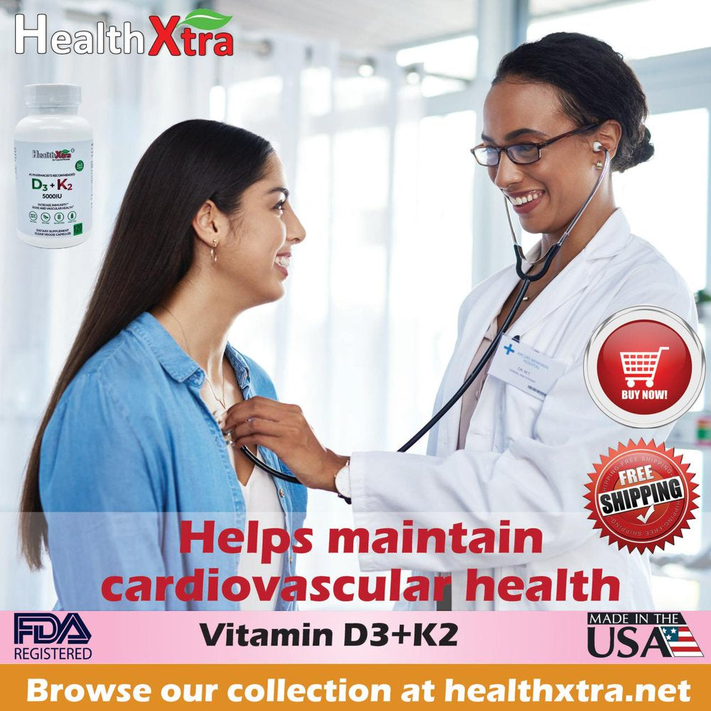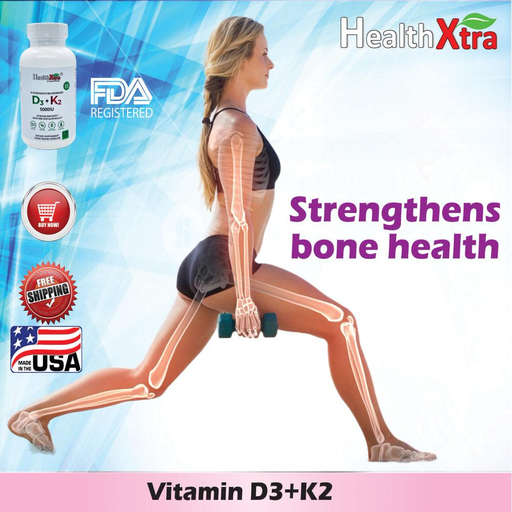 HealthXtra is a registered trademark of CapzerPharma Manufacturing. We are a FDA registered, GMP certified full line manufacturer for dietary supplements, OTC and prescription drugs including packaging. HealthXtra D3 and K2 vitamins are provided in a form that your body can use. A natural product that has no synthetic ingredients that your body cannot process. Additional bile salts aid in vitamin absorption. Why HealthXtra D3 & K2 Vitamin is right for you if? - You want to support your bones and teeth holistically. - You want natural vitamins that your body already employs to help with joint mobility. - You require mood and energy support, especially when sunlight is scarce. - You favor natural solutions that are easy for your body to assimilate. The Perfect Combination: - Vitamin D3 - Mood booster and immunological booster. A vitamin D3 shortage may explain your bad mood and fatigue in the winter. - Vitamin K2 - Used by the body to deposit calcium where it belongs, beneficial for bones and teeth. Oxbile Extract - Your body uses it to digest fats and absorb fat-soluble vitamins. Vitamins D3 and K2 are fat-soluble. This formula's bile salts help your body digest them appropriately and result in weight loss too. Top Health Benefits: a) Normal Joint Function - Calcium is required for the strength of your bones and teeth. Deficiencies in this important mineral can cause health problems. b) Bones Calcium Supplement - Vitamins D3 and K2 help to maintain your teeth and bones. Both are used by your body in distinct ways. c) Normal Immune System - Vitamin D3 helps maintain a healthy immune system by supplying your body with a useable form of Vitamin D. Both D3 & K2 Vitamin is made from natural sources and intended to boost whole-body health. It keeps you joyful and full of vitality. Its natural elements are intended to be easily absorbed by your body in order to promote optimum health. The product is manufactured in USA.