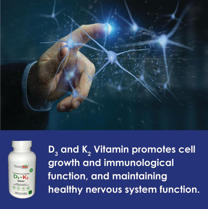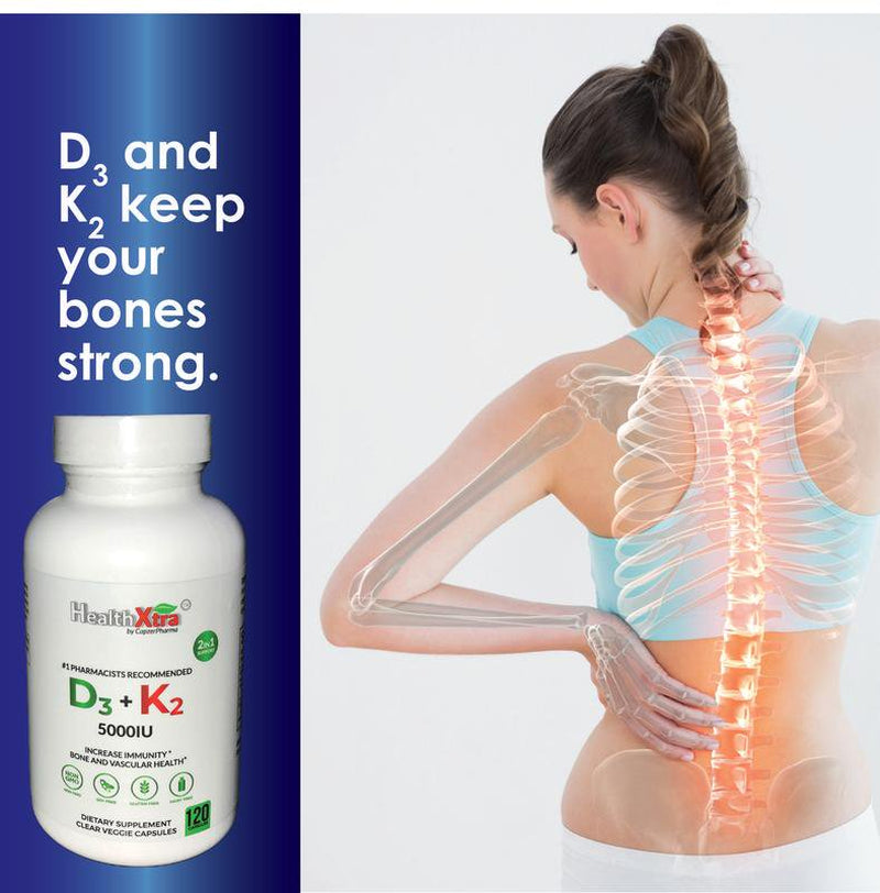 • The Amazing Combination D3+K2: Most people are aware of the benefits of Vitamin D, but many are unaware that Vitamin D helps Vitamin K2 function properly. Our D3+K2 vitamin supplement is derived from natural sources and aids in the maintenance of strong bones.
