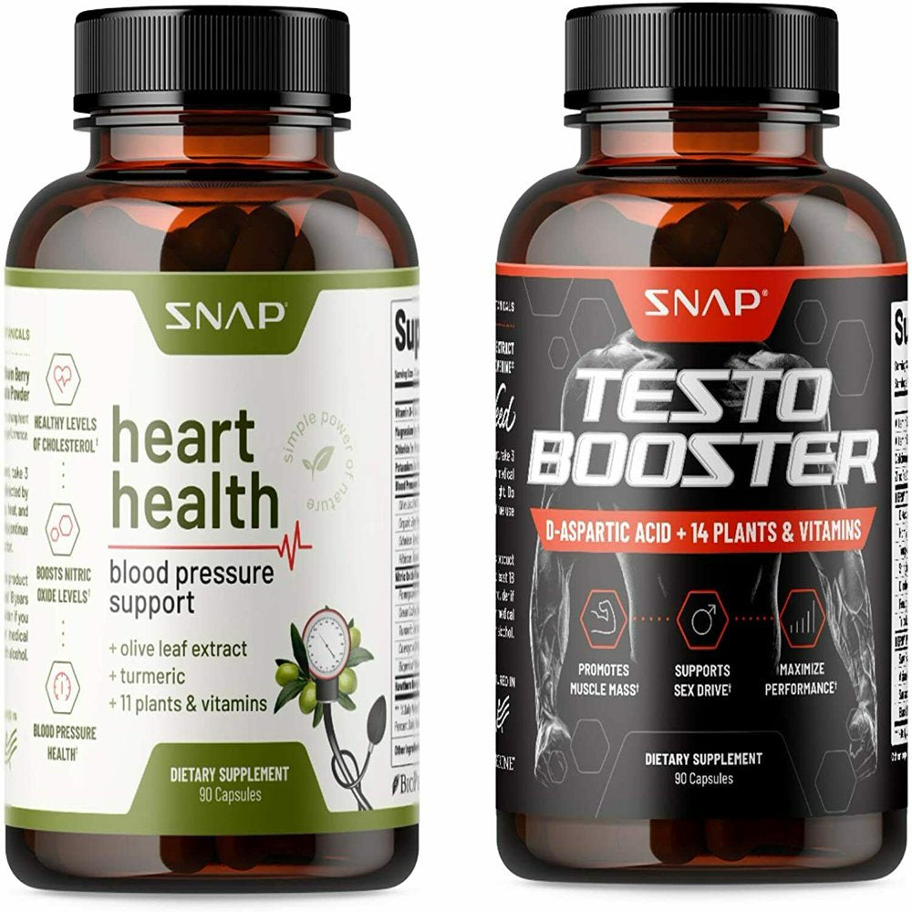 Heart Health & Testo Booster, Snap Supplements Heart and Sexual Wellness Supplement, 2-Pack Bundle, 90 Capsules Each