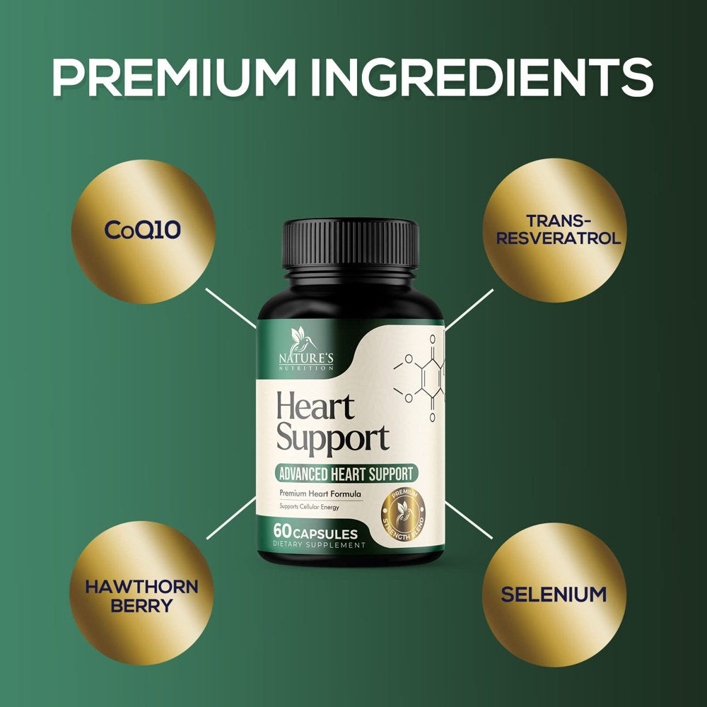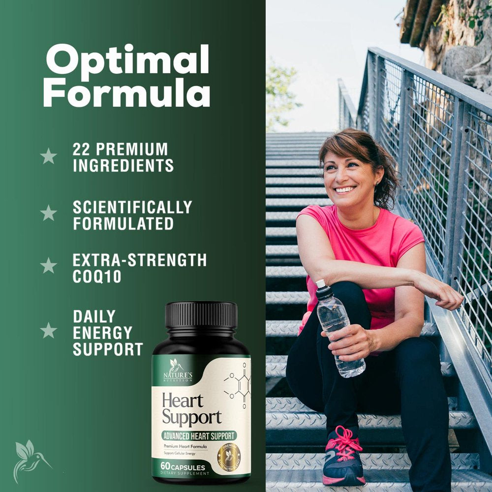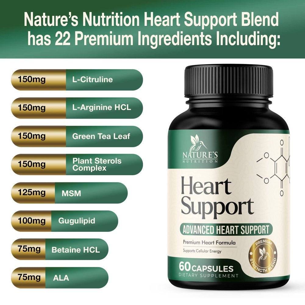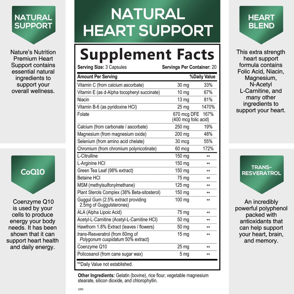 • All in One Heart Support: Nature's Nutrition advanced heart formula support for vascular health and lipid profile wellness with a powerful mix of 22 key vitamins, extracts, antioxidants and natural heart nutrients