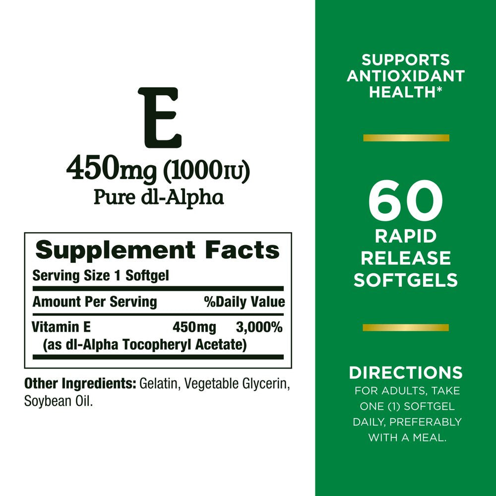 • Nature’s Bounty Vitamin E 1000 IU Softgels for Heart Health Support, 60 Count