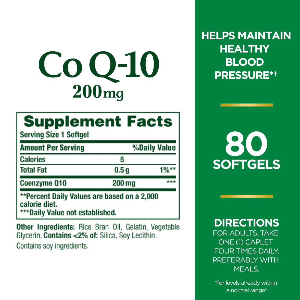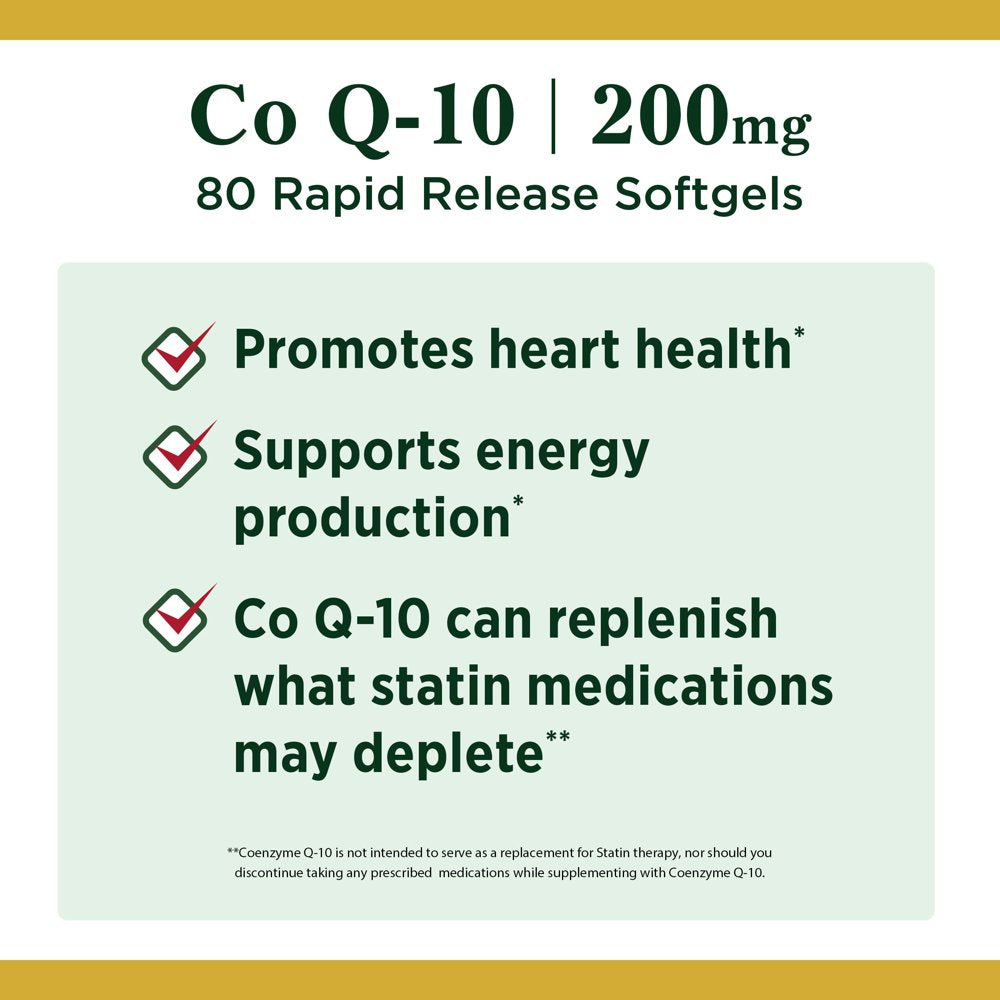 - Nature's Bounty CoQ10 200 mg Rapid Release Softgels for Heart Health Support, 80 Ct