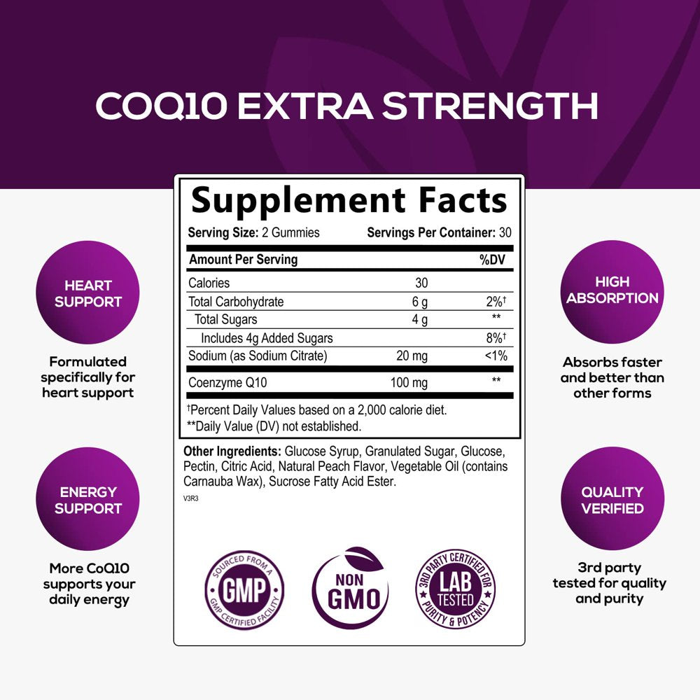 • Trusted Formula: Our CoQ10 100mg Gummies are formulated and manufactured following strict cGMP guidelines; Our Coq 10 supplements are third party tested to assure the quality and purity of each batch
