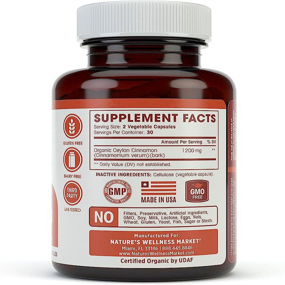 Organic Ceylon Cinnamon - 1200 Mg | Powerful Antioxidant Promotes Heart Health | Maintains Joint Health and Mobility | Non-Gmo | 60 Veg Capsules