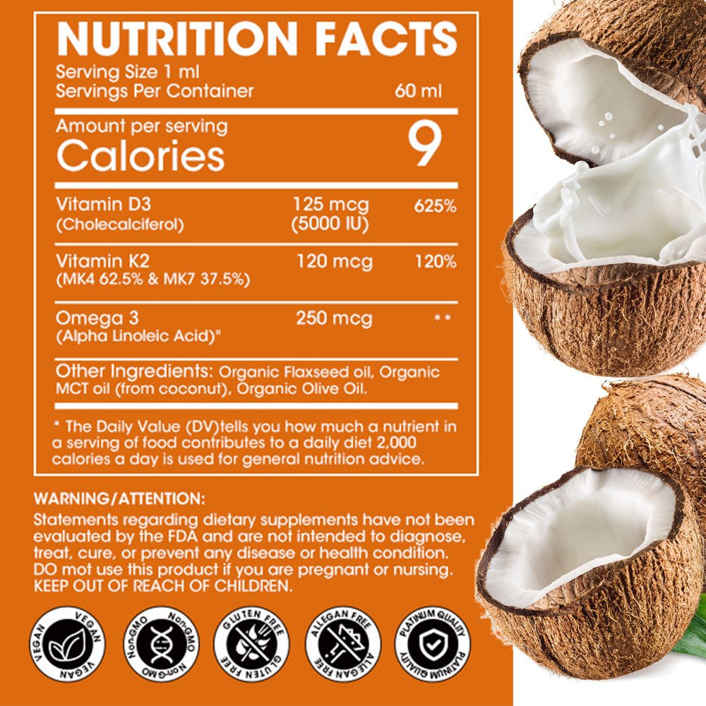 - ORGEUOS Vitamin D3 K2 Liquid Drops 5000 IU, with MCT Oil Omega 3
