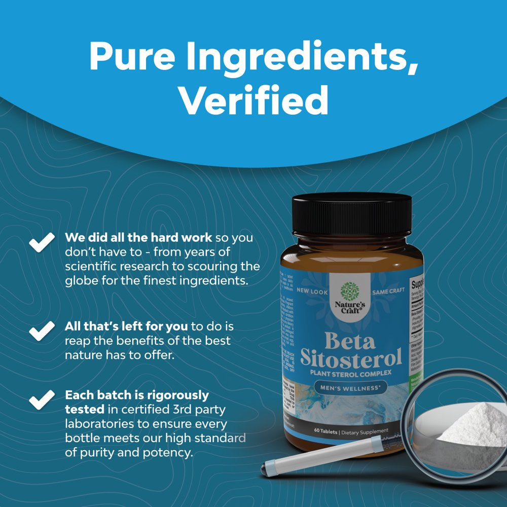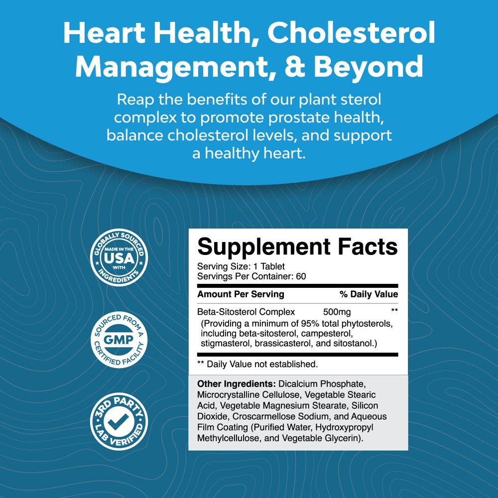 Plant Sterols Complex with Beta Sitosterol - 500Mg Beta-Sitosterol Sterols and Stanols Supplement for Heart Health and Prostate Support - Heart and Prostate Health Supplement for Men - 60 Tablets