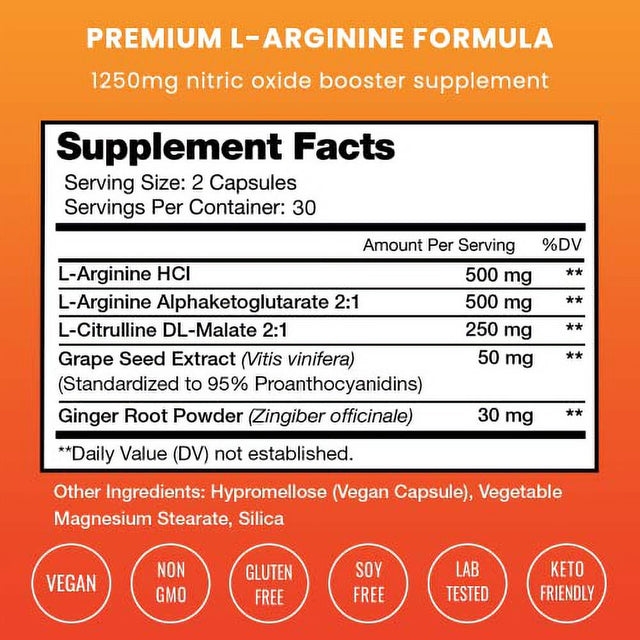 Premium L Arginine Nitric Oxide Supplement | Extra Strength for Energy, Muscle Growth, Heart Health, Vascularity & Stamina | Powerful NO Booster Capsules with L-Arginine & L-Citrulline Powder