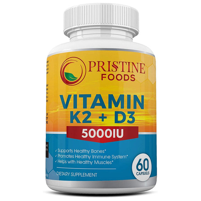 Pristine Foods Extra Strength Vitamin K2 (MK7) with D3 (5000 IU) Supplement - for Bone and Heart Health, Immune Health Support - 60 Capsules