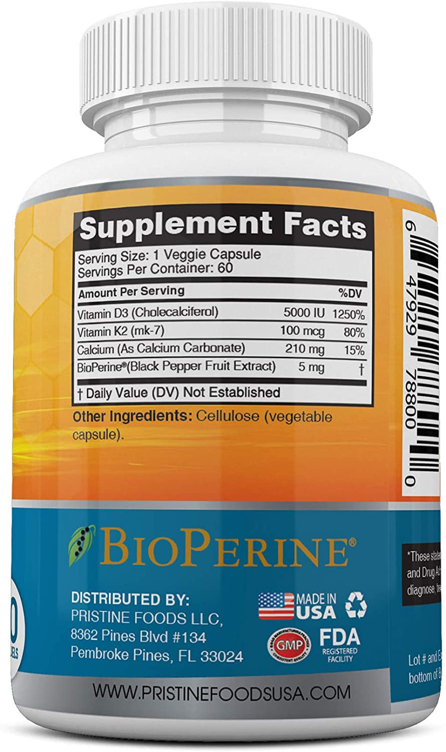 ENHANCED ABSORPTION: Designed to maximize the synergies between these two fat-soluble vitamins, Pristine Foods K2 + D3 is made with BioPerine. This Black Pepper extract enhances the absorption of vitamins and minerals so you can be guaranteed the highest potency and efficacy per dose.