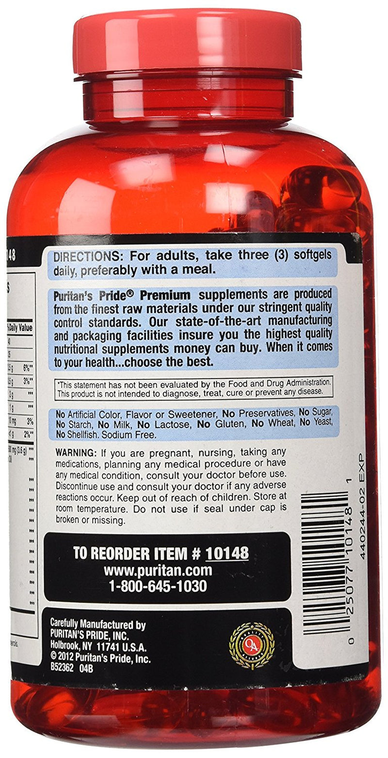 Puritan'S Pride Triple Omega 3-6-9 Fish, Flax, and Borage Oils, Omega Fatty Acid Supplement, Purified to Eliminate Mercury, Supports Heart Health, 240 Rapid Release Softgels