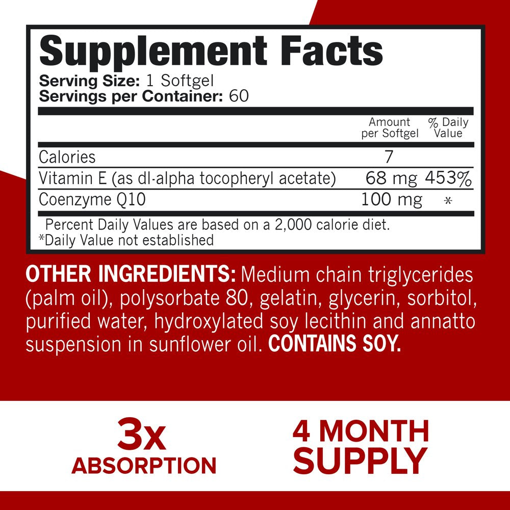 Qunol Coq10 100Mg Softgels Ultra 3X Better Absorption Coenzyme Q10 Supplements - Antioxidant Supplement for Vascular and Heart Health & Energy Production - 4 Month Supply - 60 Count (Pack of 2)