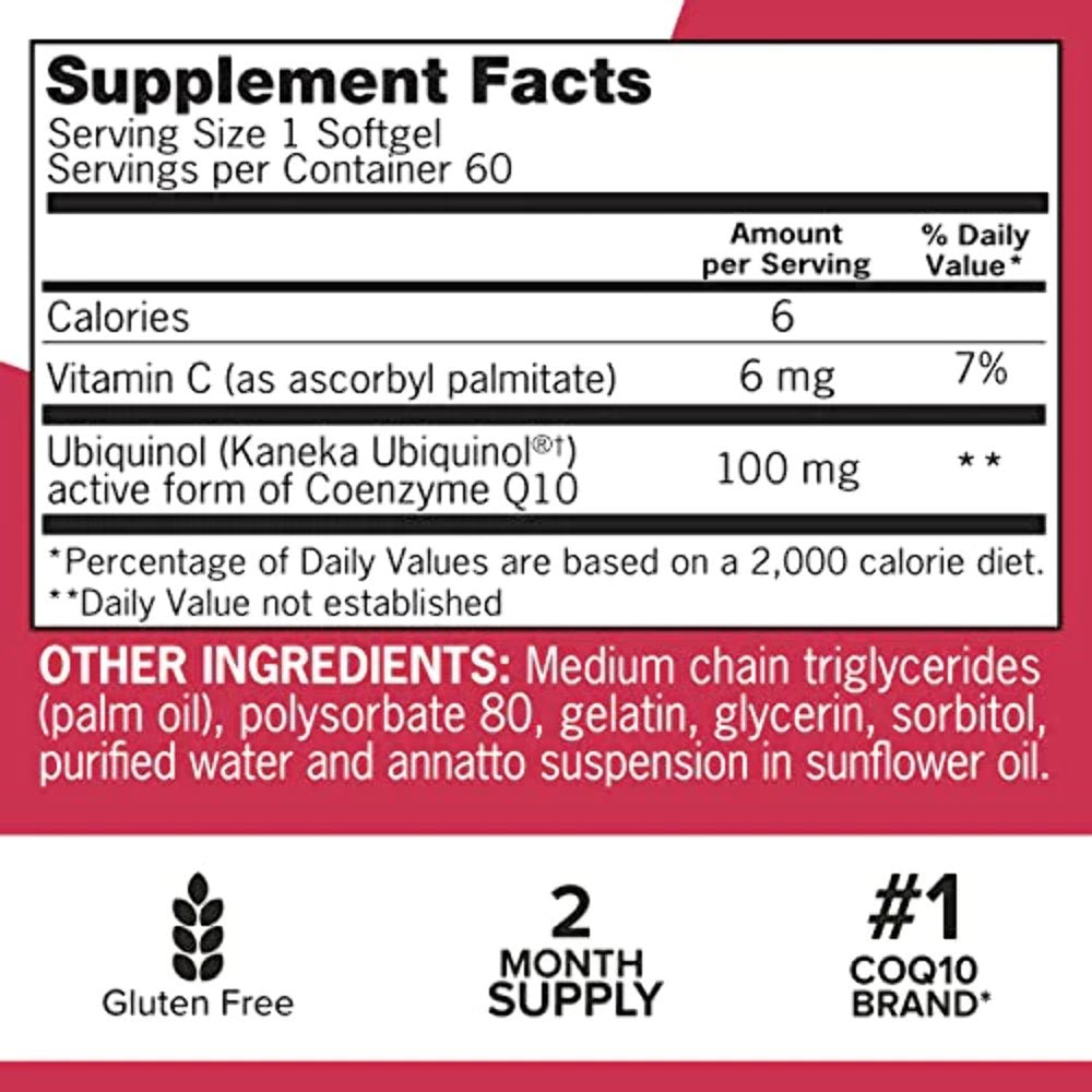 Qunol Mega Ubiquinol Coq10 Softgels, 100Mg, Antioxidant Supplement for Heart Health, 60 Count