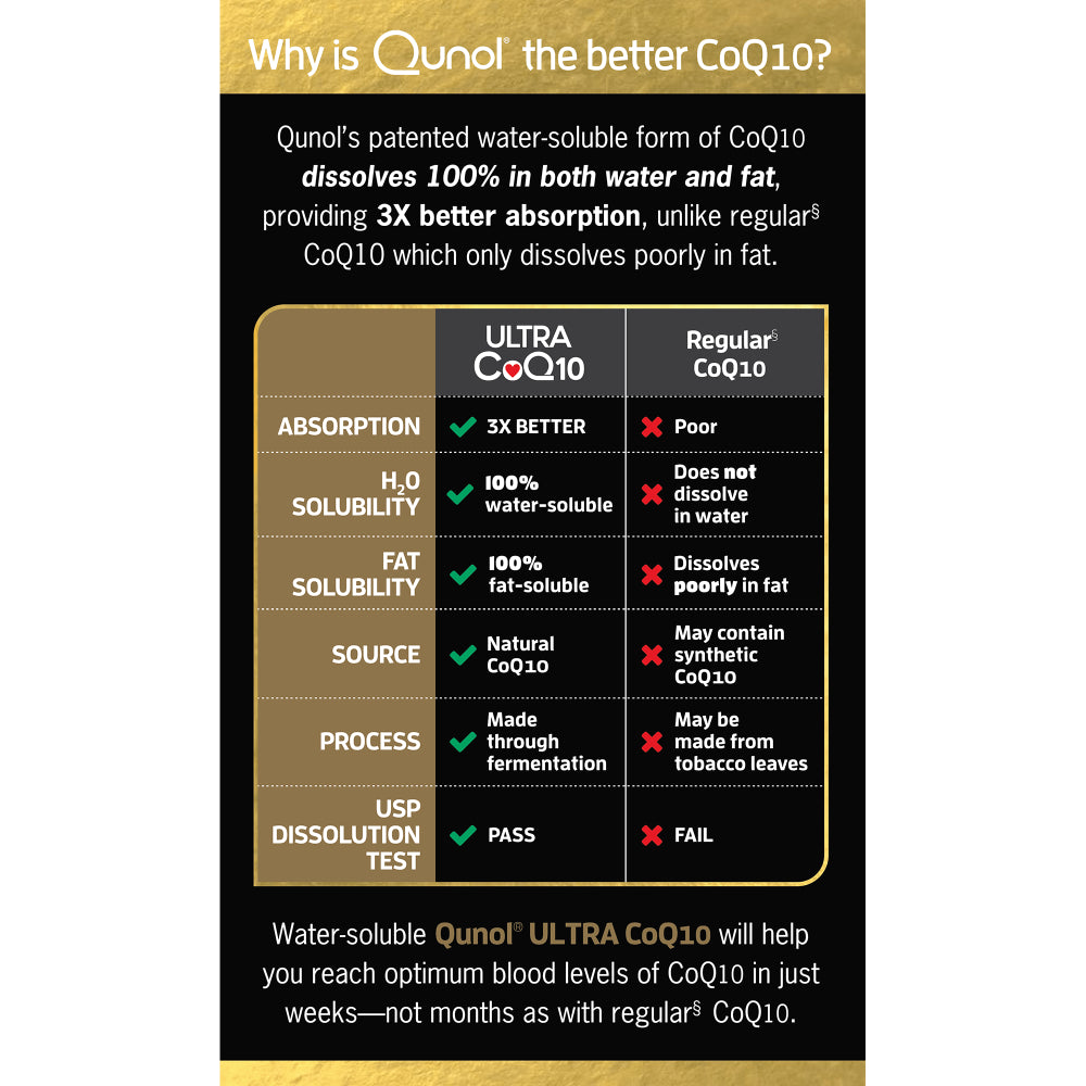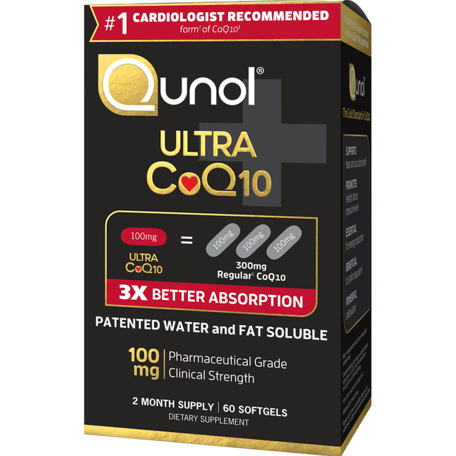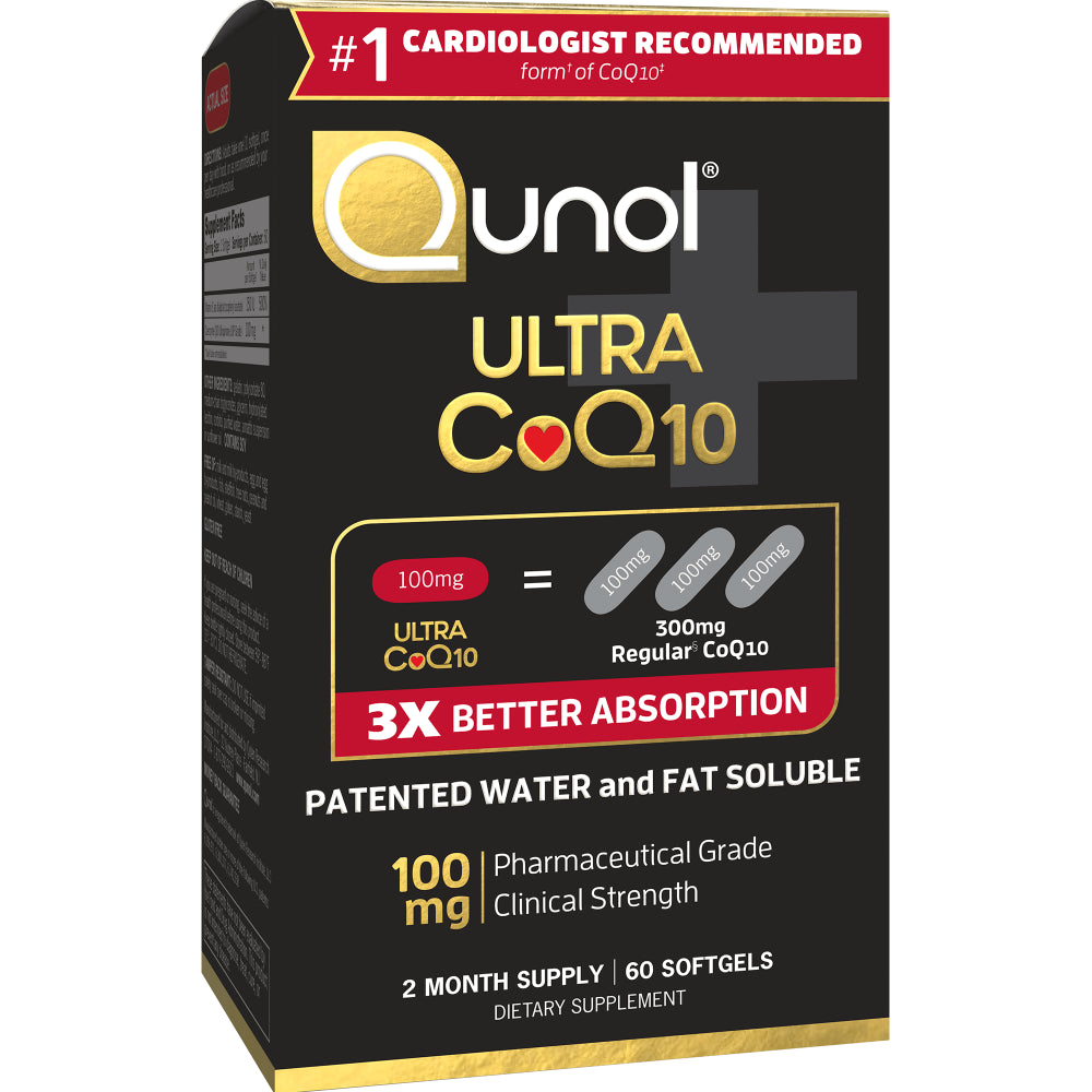 Qunol Ultra 100Mg Coq10, 3X Better Absorption, Patented Water and Fat Soluble Natural Supplement Form of Coenzyme Q10, Antioxidant for Heart Health, 60 Ct