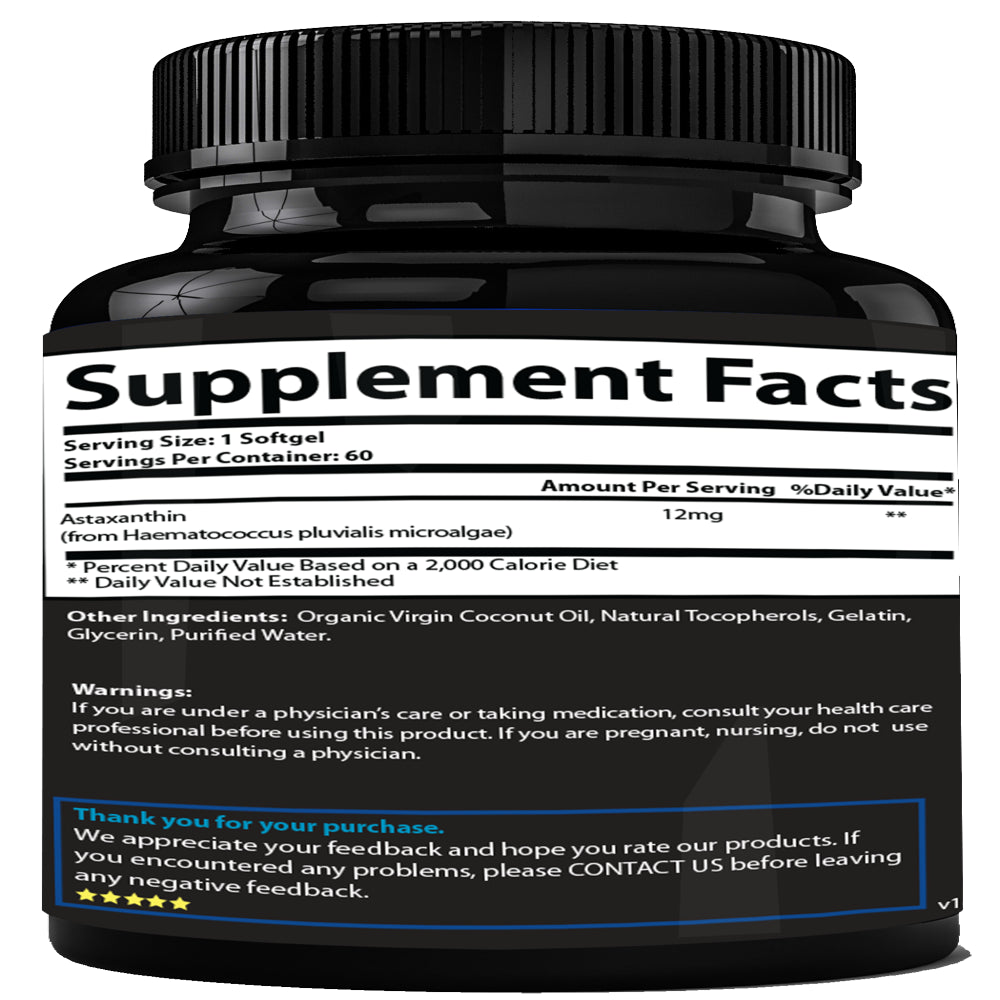 - 100% Icelandic Astaxanthin sourced from Haematococcus pluvialis micro-algae so you know it’s clean and pure. Manufactured in a GMP certified facility in the USA. Never any herbicides, pesticides, GMOs or industrial pollutants. 12mg Softgels with Organic Coconut Oil for Enhanced Absorption.