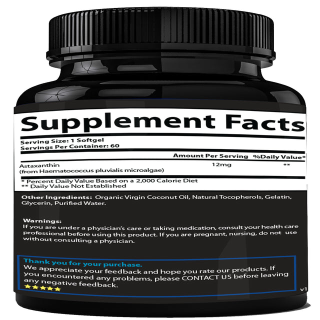 Research Labs Triple Strength Natural Astaxanthin 12Mg Softgels with Organic Coconut Oil for Enhanced Absorption. Powerful Antioxidant Supports Eye, Joint & Heart Health. 120 Total Softgels is backordered and will ship as soon as it is back in stock.
