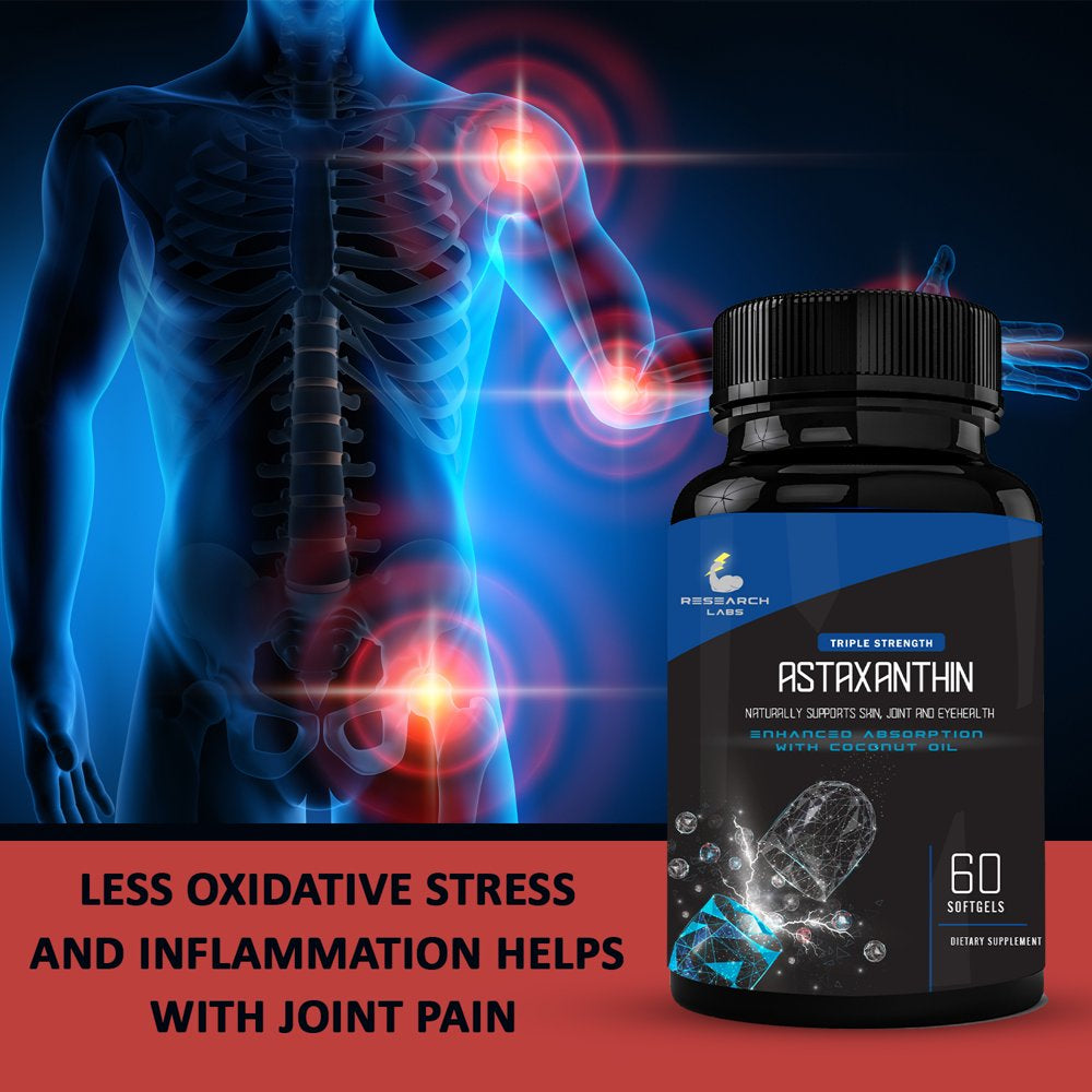 Research Labs Triple Strength Natural Astaxanthin 12Mg Softgels with Organic Coconut Oil for Enhanced Absorption. Powerful Antioxidant Supports Eye, Joint & Heart Health. 120 Total Softgels