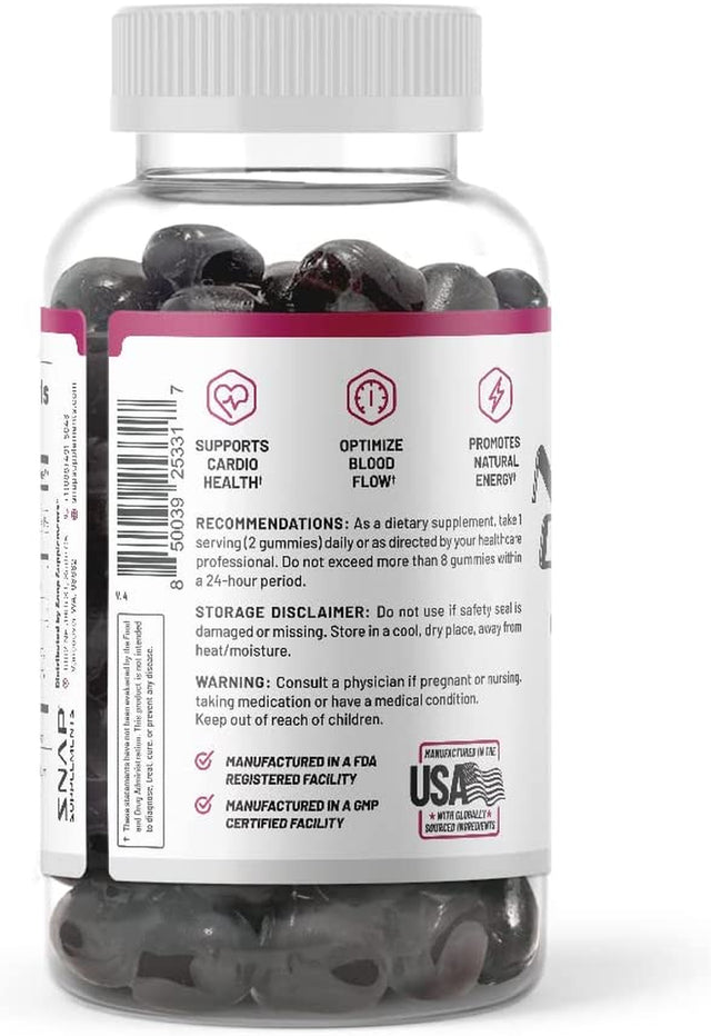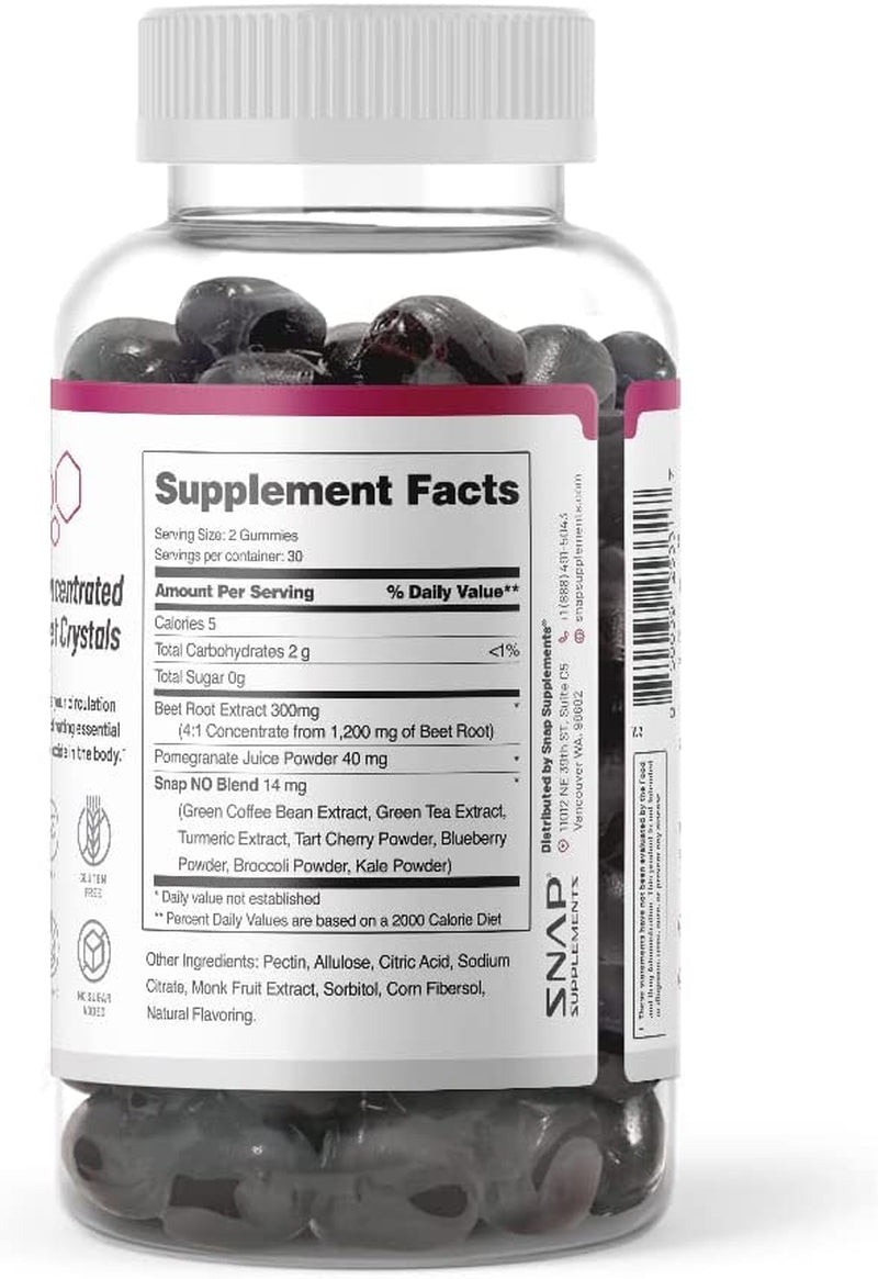 Snap Supplements Sugar Free Nitric Oxide Beet Root Gummies - Heart Health, Energy Boost, Circulation, Beet Root Chewables, Beetroot Nitric Oxide Booster, 60 Gummies