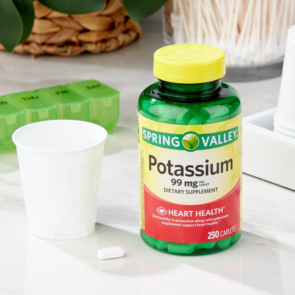 - Spring Valley Potassium Heart Health Dietary Supplement Caplets, 99 mg, 250 Count