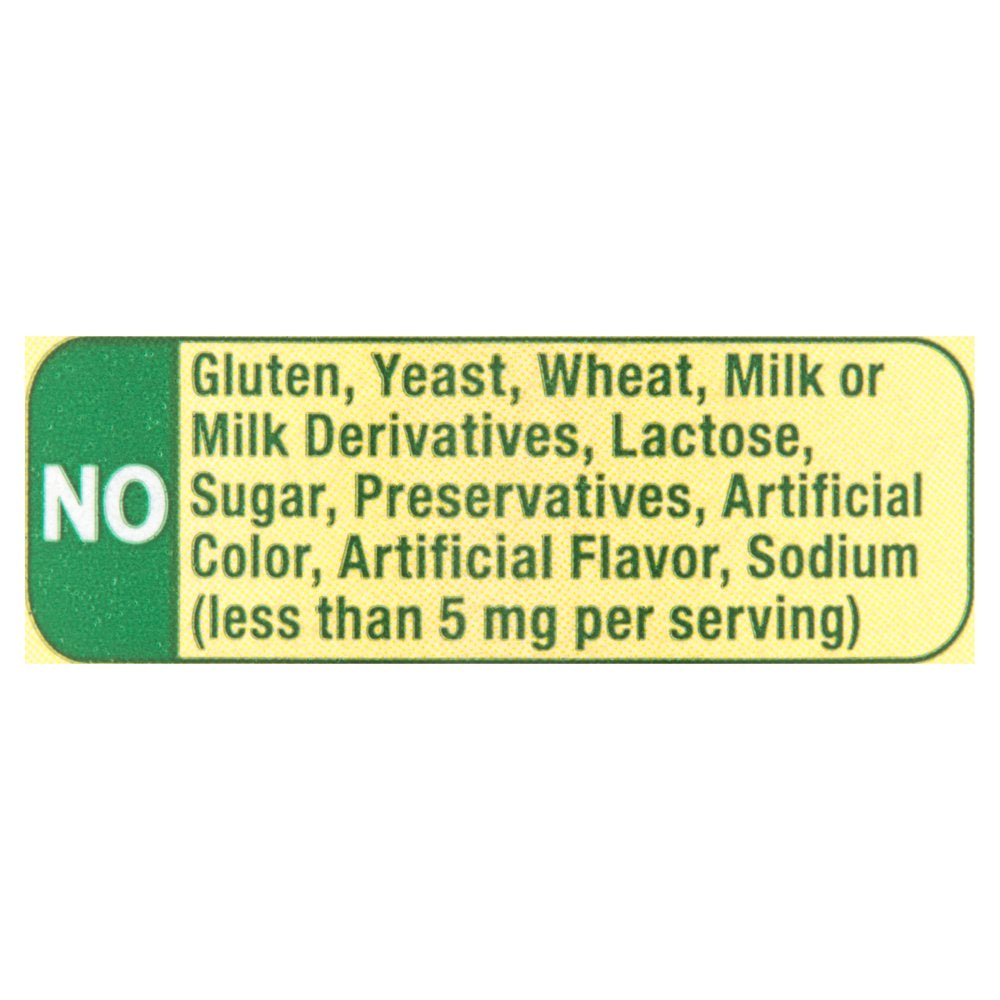 • No gluten, yeast, wheat, milk, lactose, or sugar