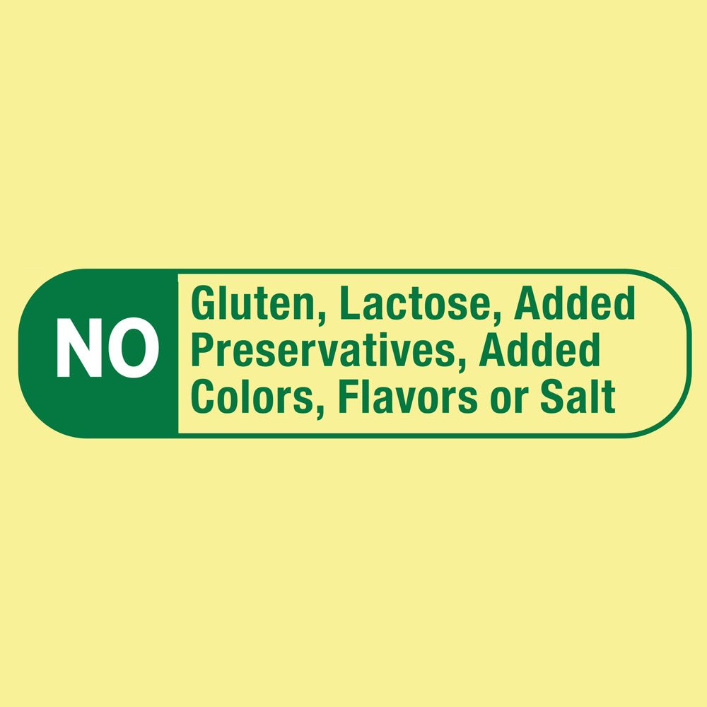 - No gluten, lactose, added preservatives, added colors, flavors, or salt