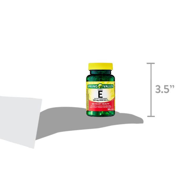 - Spring Valley Vitamin E Heart Health Dietary Supplement Softgels, 180 mg (400 IU), 100 Count