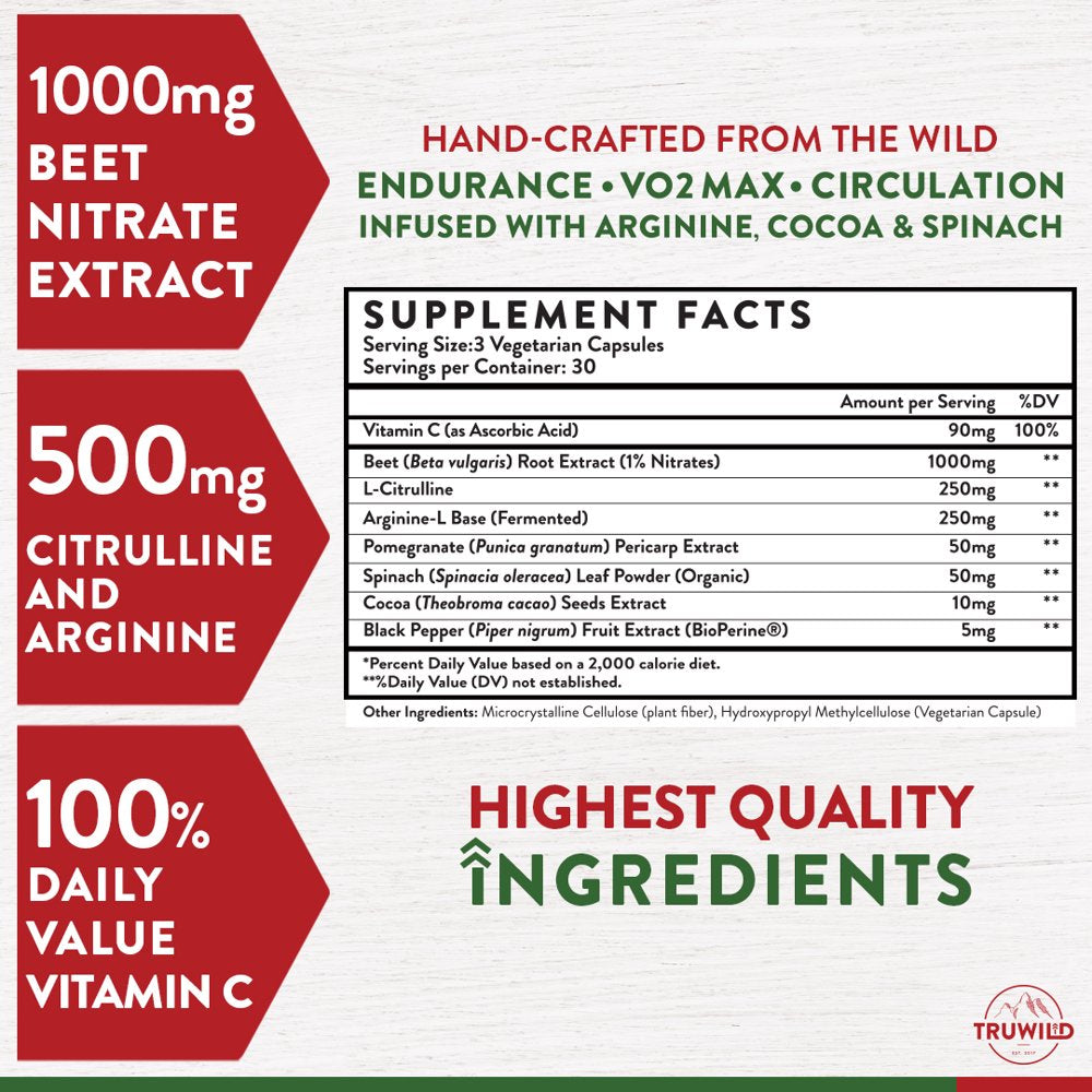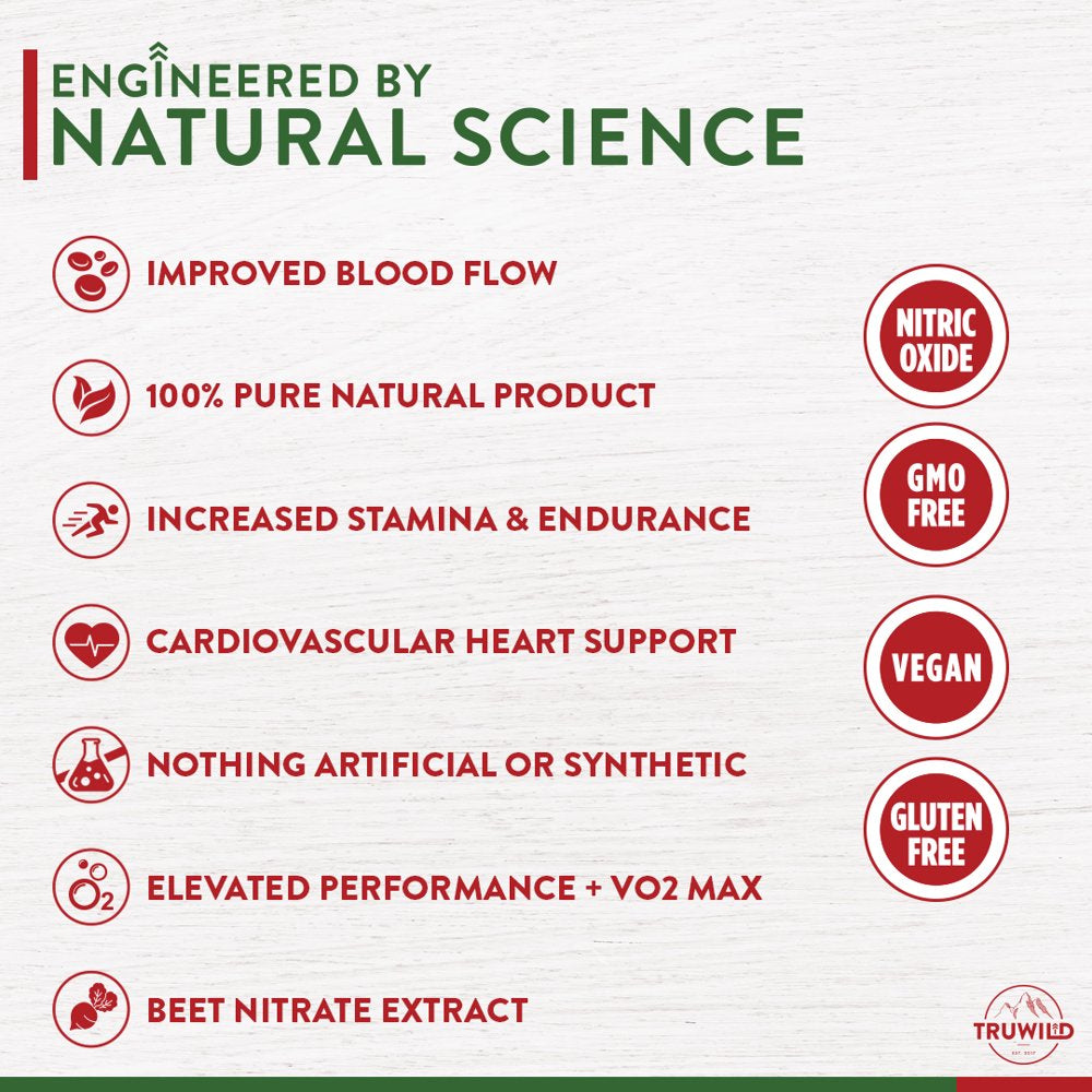 TRUWILD Nitric Oxide Beet Root Supplements - Pre Workout, Muscle & Heart Health, Circulation Superfood - L Arginine, L Citrulline - 2 Pack