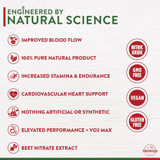 TRUWILD Nitric Oxide Beet Root Supplements - Pre Workout, Muscle & Heart Health, Circulation Superfood - L Arginine, L Citrulline - 2 Pack is backordered and will ship as soon as it is back in stock.