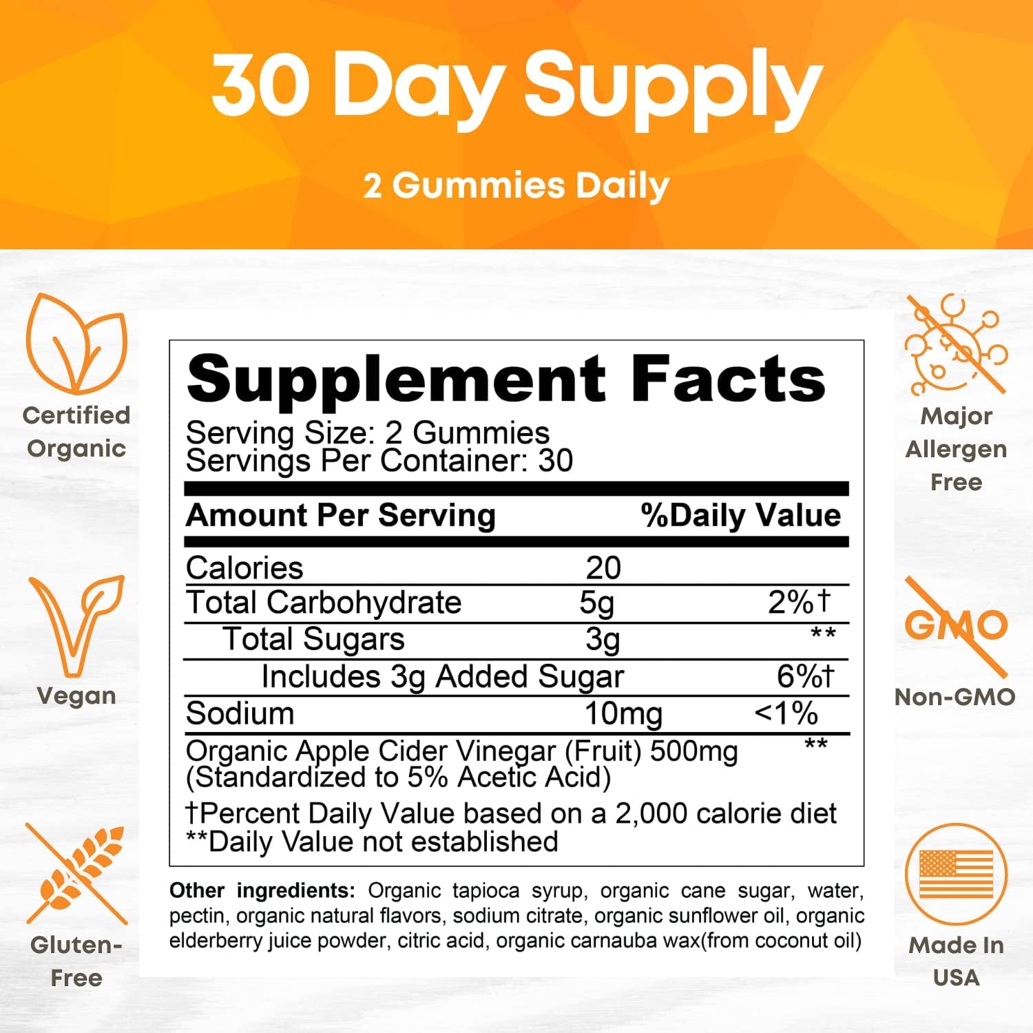 - Natural Detox and Cleanser: Our Apple Cider Vinegar Gummies are organic, vegan, keto-friendly and contain natural flavorings