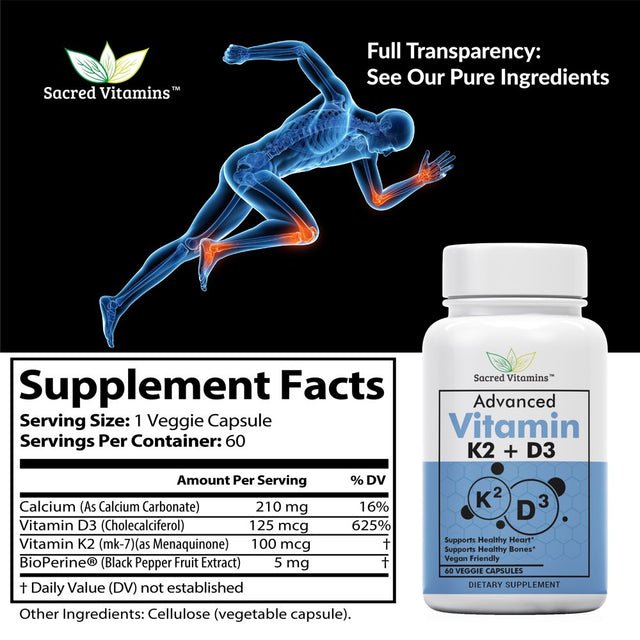 • COMPLETE, EVERYDAY VITAMIN K2 + D3 SUPPLEMENT: Our vitamin D3 K2 capsules are potent and fast-acting, meaning this is the ONLY supplement complex you will need for complete mood support, bone support, and heart health! Our vitamin D3 K2 formula is now in a fast-absorbing capsule with BioPerine (Black Pepper Extract) ensuring that it gets to work fast!