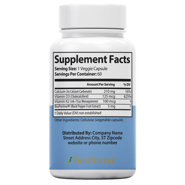 Vitamin & Supplement Type Vitamin K2 and Vitamin D3 Capsules with BioPerine