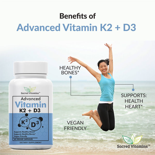 - FOR A HEALTHY HEART: Vitamin K2 + D3 has been shown to actively boost your bodyâs antioxidant levels aiding in your overall heart health! Giving your body the crucial bone and heart support you need so you can be on-the-go and continue living an amazing life without slowing down. Supplementing with a vitamin K plus vitamin D supplement will help stay ready to go! Get back on your feet, doing what you love with the aid of our complete vitamin D3 K2 supplement!